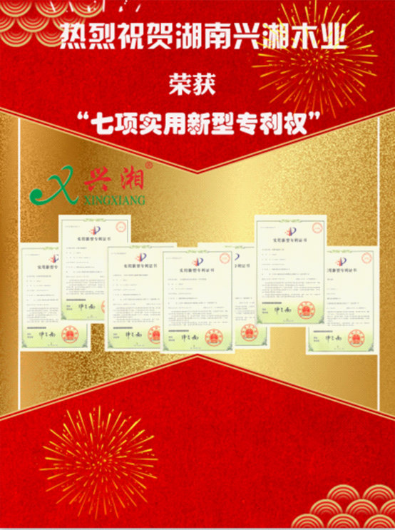 2018年11月13日,湖南興湘木業榮獲國家知識產權局頒發的七項發明專利權證書: