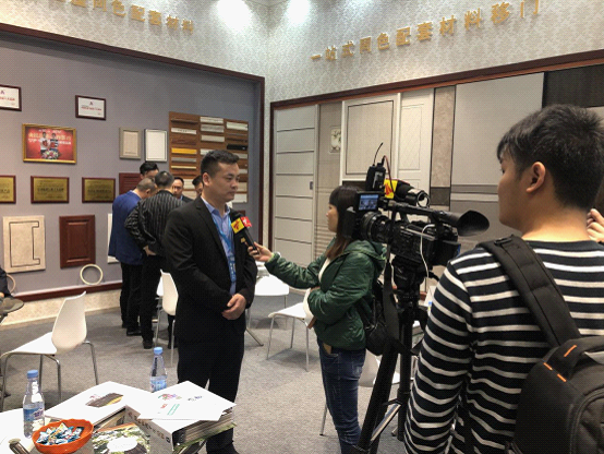 26日、27日上午,正在展會現場采風的廣東衛視記者,看到福臨展廳人頭攢動、客流不息,立即將鏡頭鎖定在福臨展廳,對現場的觀展人員進行了隨機采訪,對福臨系列產品進行了近景特寫。福臨板材的工作人員向記者詳細講述了產品的特性以及對人體健康帶來的好處,并提示電視機前的觀眾朋友,選擇板材,最好選用負離子生態板,這樣更益于居家健康。(采訪報道將于展會結束后在廣東衛視播出)