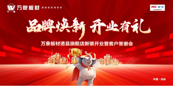 此次新裝開業,將為道縣市場帶來萬象品牌全新終端形象和專業服務水平,以高品質的產品和超越預期的購物體驗,持續夯實「湖南板材領導者」的品牌勢能!