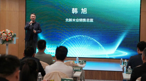 北新木業銷售總監韓旭先生在峰會上發表講話,高度肯定此次聯名推新的重要意義。并指出,這次合作不僅是北新集團布局高端綠色板材市場的關鍵實踐,更通過央企私企協同為行業樹立了“資源共享、優勢互補”的合作標桿,對推動建材產業升級具有重要示范作用。
