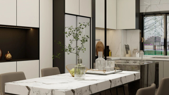 廚房柜體的設計是“美學表達”與“功能落地”的結合體,既以簡約高級的視覺呈現契合現代家居審美,又以精細化的收納與布局,為日常烹飪、用餐提供高效且舒適的體驗,最終讓餐廚空間成為家的 “質感生活容器”。