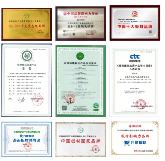 書房是長時間伏案閱讀、專注獨處的空間,環保從來都是不可逾越的底線。萬象板材榮獲多項國家權威認證,全線產品達到ENF級環保標準,甲醛釋放量≤0.025mg/m³,遠超國家新國標要求,從源頭杜絕甲醛隱患,守護每一次安心呼吸。