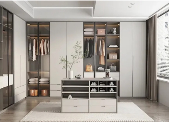 ·激光封邊:高端定制首選工藝,封邊帶自帶涂膠層,通過激光高溫熔融與板材無縫融合,無任何膠線痕跡,質感細膩高級,顏值與實用性兼具,尤其適合柜門定制,能顯著提升整體空間質感。