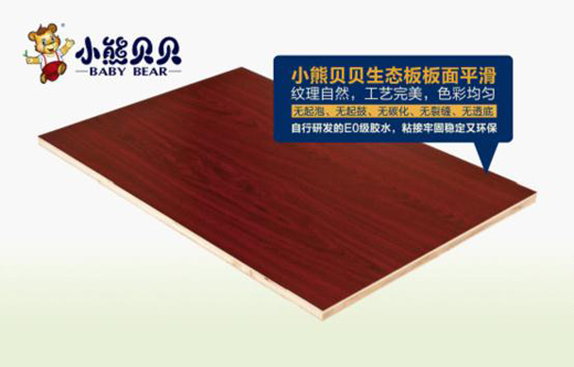 本著“愛是一種責任”的品牌愿景,讓全天下所有家庭、辦公室都能遠離板材裝修污染,小熊貝貝堅持生態板產品選用進口金杉木、香杉木整拼王、進口馬六甲芯材,從對原木的精挑細選、到原材料兩次標準烘干房烘干,三次15天的養生周期等高達40道優質的生產工藝,設有“貝”關懷計劃,公司自建標準實驗室,再配合國家權威檢測機構,對產品的每一道工序進行質量嚴把,確保每一張板材都是優質的產品。小熊貝貝,本著愛心與良心只出健康安全的精品,可見獲得“中國十大生態板品牌”實至名歸。