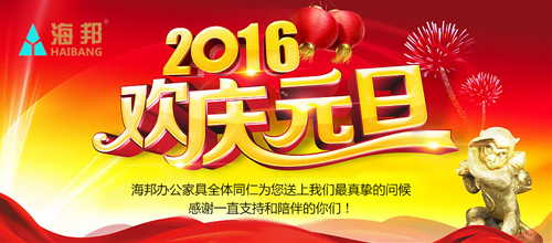 元旦佳節,新年新篇章。歲月的華章,寫盡驚艷的過往;新年的鐘聲,傳遞衷心的祝愿!告別碩果累累的2015年,我們迎來生機昂然的2016年。在這一年一度的美好時刻,海邦辦公家具全體同仁為您送上我們最真摯的問候,感謝一直支持和陪伴的你們。