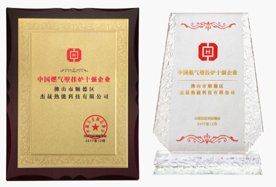 在多年的砥礪發展中,兢兢業業、一絲不茍的杰晟深受行業認可,接連榮獲“順德質量技術監督數碼防偽網成員單位”、“燃氣供熱專業委員會會員單位”、“中國著名品牌”、“中國綠色環保產品首選品牌”等多項含金量極高的榮譽!而這些榮譽的獲得,都是杰晟強勁綜合實力的最好體現!此外,在中國熱能行業中表現出色的杰晟企業更榮獲“中國燃氣壁掛爐十強企業”榮譽稱號,成功樹立起杰晟的發展里程豐碑!