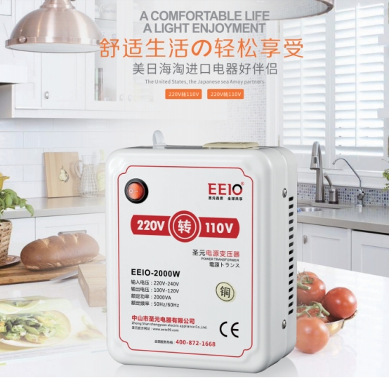 電源變壓器是一種軟磁電磁元件,功能是功率傳送、電壓變換和絕緣隔離,在電源技術中和電力電子技術中得到廣泛的應用。以EEIO圣元110v轉220v電源變壓器為例,其主要用于進出口家電實現110V-220V之間電壓轉換:220V轉110V變壓器,110V轉220V變壓器,是美日海淘進口電器的好伴侶。