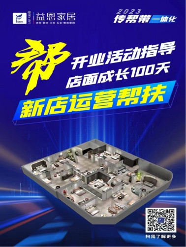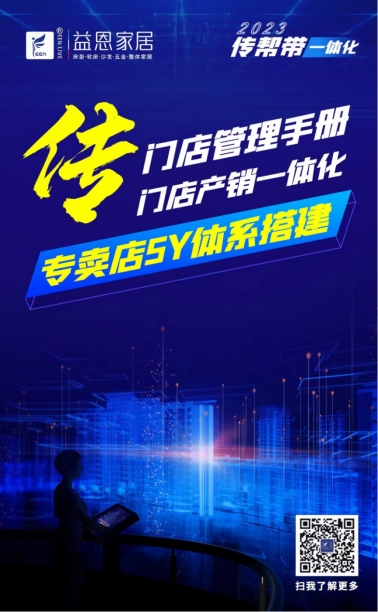 益恩家居在品牌、渠道、產品、形象、設計全面升級。為全面拓寬品牌市場覆蓋面,開拓更新市場,與終端代理商攜手謀大勢,做強品牌做大市場,益恩家居制定了【傳幫帶一體化】的營銷戰略。