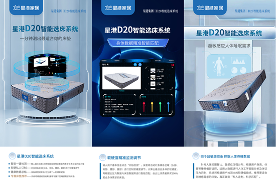 2021年星港家居整合深圳德賽電子、量子科技等小米生態鏈上的高科技企業研發團隊,利用彈性纖維電極、纖維壓力傳感矩陣、纖維拉力傳感器等核心技術,創新打造了星港D20智能選床系統和智能睡眠系統。