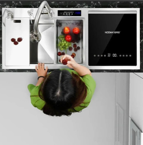 諾帝瑪雙觸媒果蔬智能凈化水槽,采用高端SUS304不銹鋼,純手工打造;3.5MM超厚面板,1.2MM超厚槽體,打造金剛不壞之身;精細R10弧線打磨,更易打理;內置隱藏刀架,刀具嵌入擺放更省心;多種款式、大小面板可選,滿足不同廚房需求。