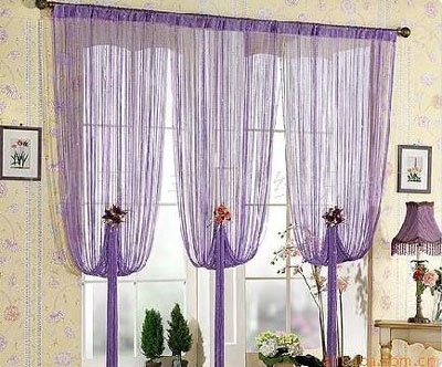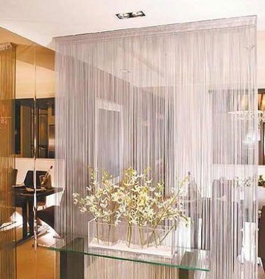 線簾是以人造纖維、聚脂纖維所構成,一條條細長的線在簾子的上方有著類似窗簾的收邊,使用時可視需求裁切。過去線簾、珠簾、絲簾等常被運用于商業空間中,近年來由于室內空間設計講求風格與個性,質輕好整理的線簾漸被運用于居家空間中,作為裝飾或輕隔間材料。