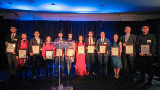 志達(dá)家居設(shè)計(jì)師代表(左四)上臺(tái)領(lǐng)取“美國尖峰設(shè)計(jì)獎(jiǎng)-里程碑獎(jiǎng)”
