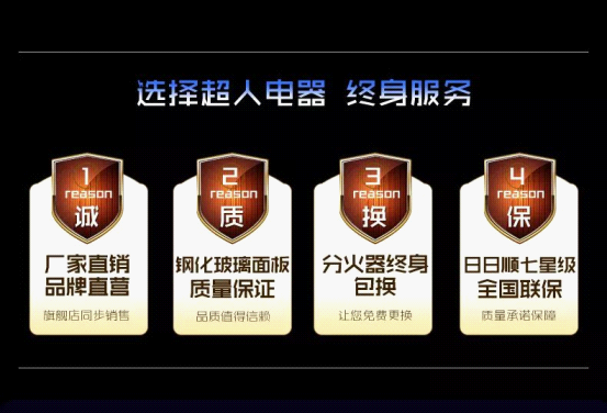 選擇超人電器,售后無(wú)憂。鋼化玻璃面板質(zhì)量保證,分火器終生免費(fèi)更換,日日順七星級(jí)全國(guó)聯(lián)保,還有什么不放心的?