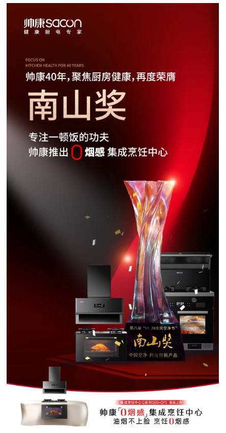 聚焦廚房健康,帥康榮獲南山獎(jiǎng)