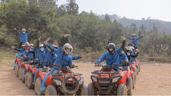29日,總部為本次會議安排了刺激解壓的叢林越野車穿越活動,大家兩人一車,一路上有驚無險,笑聲、尖叫聲激情蕩漾著整片叢林;更加刺激的就是山地越野車的漂移、原地打圈等高難度的車技表演,健湃家人們個個人車合一、出神入化的展現出一個一個的完美車技,引得全場陣陣的掌聲、喝彩聲!