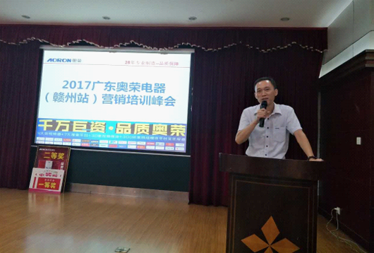 隨后,為使現場家人們深入了解奧榮電器最新產品賣點以及加強對產品的信心。奧榮電器銷售有限公司銷售總監鄭海先生上臺詳細介紹了奧榮電器各系列產品的產品賣點以及產品生產線!過硬的產品基礎是奧榮家人們對奧榮支持的首要原因!在張總的演講中,經銷商家人們眼中所流露出的目光是日后更加堅定跟隨奧榮電器一同拼搏奮斗的堅定!