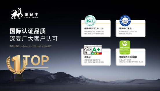 截止到目前,瞻貼牛手握“世界通行證”——品質(zhì)獲世界四大權(quán)威標準認證,即歐洲IAC金級、美國綠色衛(wèi)士金級、德國GEV EC1PLUS以及法國室內(nèi)空氣環(huán)境檢測A+標準等國際認證,還獲得了PICC中國人民保險的承保,再次證明了其在建筑建材領(lǐng)域的卓越地位。2023年,瞻貼牛順利通過央視審核,在CCTV-7軍事頻道重磅開啟展播模式。