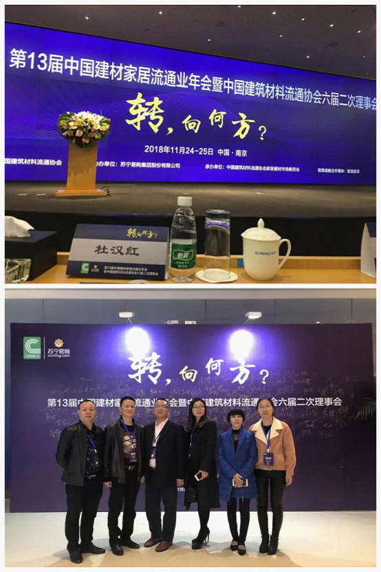 2018年11月24-25日,以“轉,向何方?”為主題的第13屆中國建材家居流通業年會暨中國建筑材料流通協會六屆二次理事會在南京順利召開。本次大會由中國建筑材料流通協會主辦、蘇寧易購集團股份有限公司協辦。中國建筑材料流通協會會長單位江門市漢的電氣科技有限公司,由總經理杜漢紅女士代表公司出席了本次會議。