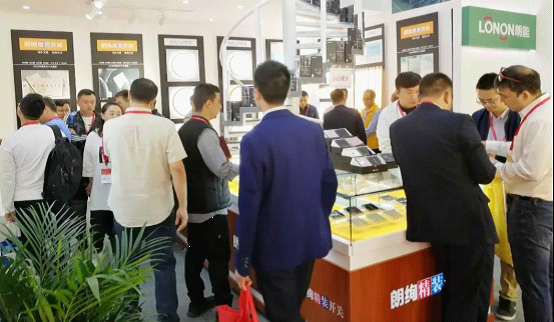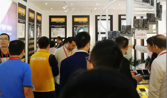 朗絢K8藍寶石開關,0.5厚iPhone級手機同款玻璃面板,全覆蓋、硬度高、抗劃傷、永不變色、歷久彌新;黑鉆、金鉆、藍鉆、粉鉆四色可自由搭配,酷炫多彩,引起參展觀眾的圍觀及驚嘆。
