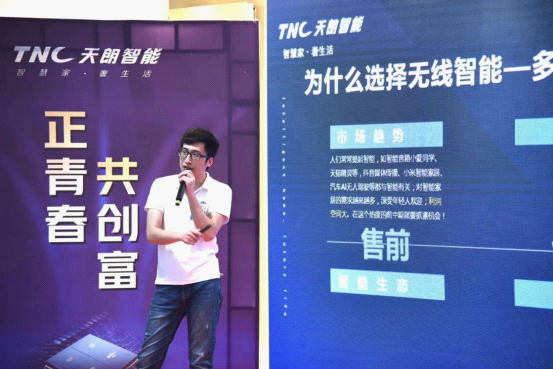 隨后,天朗智能產(chǎn)品經(jīng)理潘耀彬?qū)Α禩NC智能家居新品發(fā)布》發(fā)表演講。本次新品融匯了天朗智能研發(fā)團(tuán)隊(duì)的創(chuàng)新成果,由產(chǎn)品部經(jīng)理潘耀彬與大家分享天朗智能情景開關(guān)的結(jié)構(gòu)、外觀、材質(zhì)、賣點(diǎn)、以及為客戶提供的售前、售中、售后的一系列服務(wù),并現(xiàn)場用手機(jī)給大家演示智能燈光的變化過程。來賓們紛紛用筆或手機(jī)記錄下產(chǎn)品的最新賣點(diǎn),以便日后在終端銷售中能第一時(shí)間抓住消費(fèi)者的購買欲。
