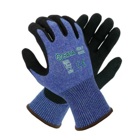從產品結構來看,SATA世達防割手套主要圍繞兩大核心技術展開。首先是高強度手套芯結構,采用HPPE纖維,并結合玻纖或鋼絲包覆紗,通過單層或雙層編織工藝,實現防割性能與柔韌性的良好平衡。其中,D級及F級產品普遍采用雙層編織結構,在防割與抗刺性能上更具優勢。其次是功能性涂層系統,包括PU涂層和丁腈發泡或磨砂涂層。PU涂層采用超薄設計,適用于干性環境,能夠強化抓握力與操作靈敏度;丁腈發泡或磨砂涂層則在微油、濕滑環境中仍可保持穩定抓握,同時具備一定的防油、防水能力。不同涂層的組合,使產品能夠覆蓋從干燥到油污環境的多種復雜工況。