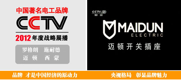 據央視網消息稱:獲得消費者最受歡迎的十大電工品牌之一稱號的邁頓電氣品牌,于2012年12月上旬,攜手央視四大頻道,詮釋品牌發展新高度。邁頓電氣品牌始終秉承客戶至上的原則,進行嚴格的質量控制,并且根據大眾消費水平,制訂合理的銷售價格。以“平民價格”提供“貴族化”的產品,這樣的價格定位,不僅使該公司產品在國內極受歡迎,而且在國際品牌當中也頗具競爭力。