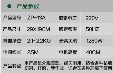 4、外觀漂亮、經久耐用、適合各種打墻切割等作業,適合在各種環境下使用。