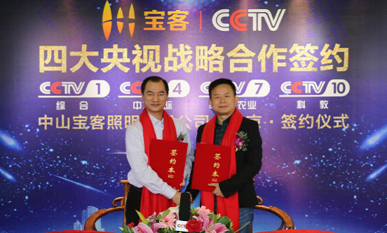 民族品牌見證國家發展!改革開放以來,民族品牌在神州大地遍地開花,隨著近年來國家對民族品牌發展的重視度愈來愈高,民族品牌對品牌塑造意識亦是隨之提升,F在,一個來自于全球燈具制造中心——廣東中山的照明品牌,在茫茫民族品牌中一躍而出,成為世界焦點!同時,其獨特的品牌魅力吸引到了我國最具權威性代表的電視媒體——中央電視臺的注意,并即將強強聯手,開啟品牌展播時代。近日,寶客品牌與央視代表在京隆重舉行品牌簽約儀式!
