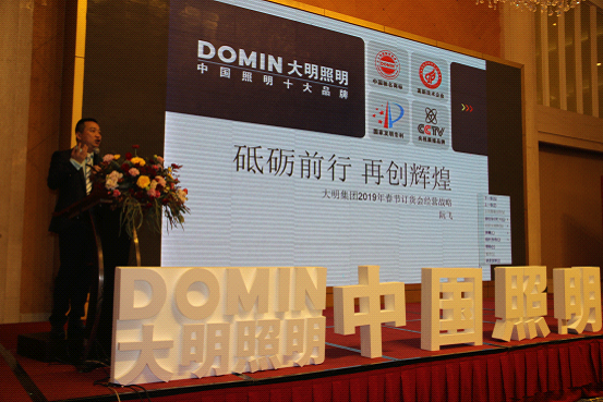 首先,由大明照明總裁阮飛先生上臺致歡迎辭并圍繞“大明照明經營戰略”做分析講解。