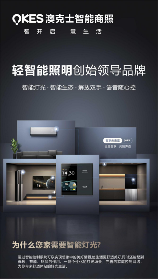 厚植照明行業三十載,澳克士照明擁有比肩國際行業頭部企業的生產實力,其擁有占地面積2萬平方米的國際化生產基地,全年照明燈具生產總量基本穩定在1200萬個以上。澳克士作為國內較早涉足智能照明領域的企業,多年來持續大力推進智能商照布局,并將“‘輕智能’解決方案商”作為產品定位,推出了一系列綠色、健康、智能、個性化的照明產品和解決方案,高度契合不同用戶在多元生活場景中對舒適便捷照明環境的需求。