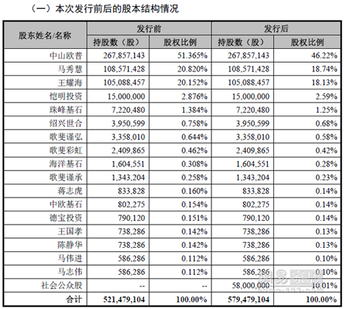 公告顯示,公司控股股東為中山歐普,持有公司267,857,143股股份,占公司本次公開發(fā)行前股份總數(shù)的 51.365 %,中山歐普主要從事企業(yè)投資業(yè)務(wù)。公司實(shí)際控制人為王耀海和馬秀慧夫婦。報(bào)告期內(nèi),公司實(shí)際控制人未發(fā)生變化。