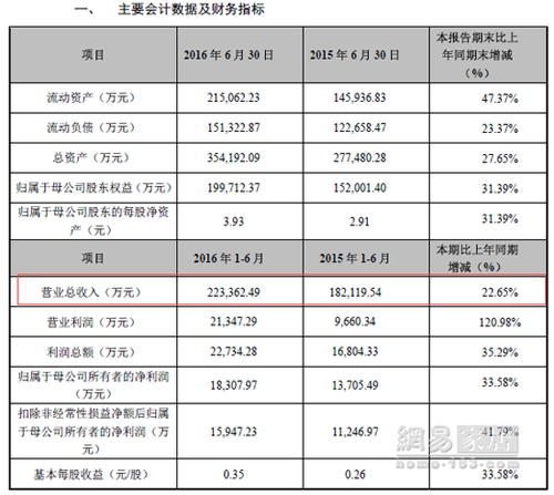 2016年1-6月,歐普照明實(shí)現(xiàn)營(yíng)業(yè)收入22.34億元,較上年同期增長(zhǎng)22.65%;實(shí)現(xiàn)歸屬于母公司股東的凈利潤(rùn)1.8億元,較上年同期增長(zhǎng)33.58%。