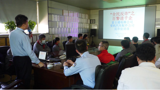 富士通電梯集團相關領導對兩位警官的到來表示熱烈歡迎,希望繼續深化警企合作,與當地警方建立緊密配合、密切合作的聯動宣傳機制,使員工掌握電信詐騙案件的行騙手段和作案特點,提高員工自我防范的能力,有效遏制各類電信詐騙案件的發生,共同營造良好的社會氛圍。
