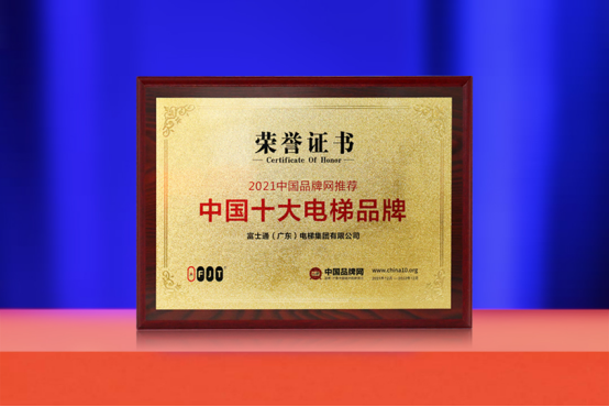近日,由《中國品牌網》主辦、《財富中國》等權威網絡媒體協辦的2021“中國十大品牌”全國網絡評選活動,通過嚴苛的層層評選考核,為行業評選出了品質過硬、服務優越、消費者認可的卓越品牌。其中,富士通電梯集團在全國各大企業的激烈角逐中脫穎而出,榮獲“中國十大電梯品牌”稱號。