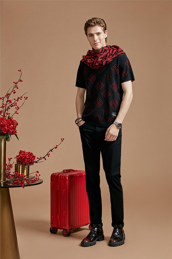 他了解紅色在中國的新年里“紅紅火火”的吉祥寓意,在第一款針織短袖上為DIKENI迪柯尼原Monogram的黑色加上強烈耀眼的紅色,利用更具有沖擊感的顏色組合實現(xiàn)設(shè)計張力,為新春時尚造型加分。