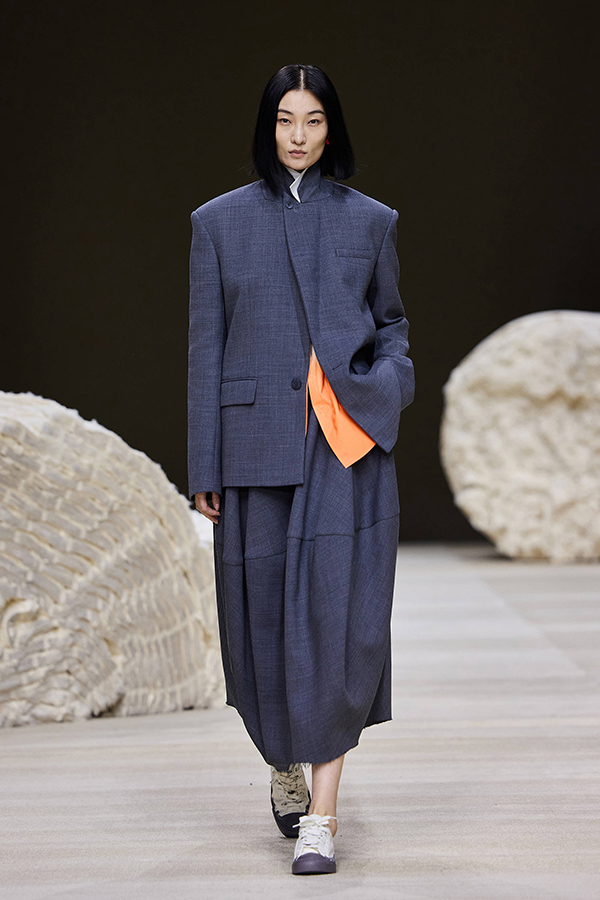 在JUDYHUA2025春夏系列中,呈現(xiàn)了“自然而然”的流動(dòng)的生命狀態(tài),使用大量的全棉,棉與羊毛,羊絨,亞麻等多元化材料的混織,塑造質(zhì)樸、獨(dú)特又環(huán)保的全新系列。對材料的再造,使JUDYHUA展現(xiàn)出獨(dú)樹一幟的時(shí)裝表情與面貌。
