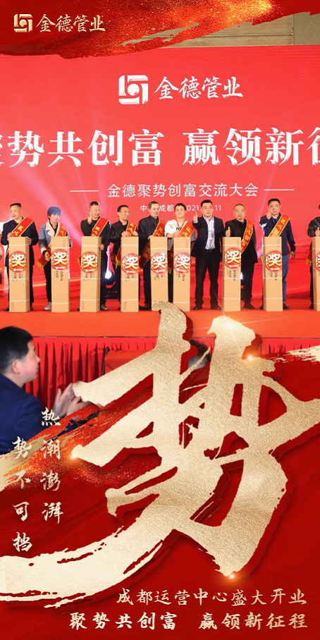 2021年4月11日,金德管業(yè)集團(tuán)成都運(yùn)營(yíng)中心盛大開業(yè)暨四川片區(qū)創(chuàng)富交流會(huì)議圓滿召開,標(biāo)志著金德管業(yè)邁出扎實(shí)的步伐,贏領(lǐng)新征程!