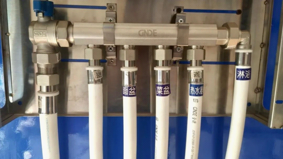 “首先,這個鋁塑PAP管和分水器配合起來,從分水器到任何一個端口,比如到你家廚房的洗菜盆,浴室的淋浴,都是獨立的一根管道,中間沒有三通接頭,直接減少了非常多的安全隱患。其次,也正是因為使用了分水器,管道中間沒有接頭,再加上咱們金德管道本身質量不會出現問題,我們后期檢修非常方便,只需要檢修分水器就可以。最后就是業主比較在乎的水壓問題。因為咱們主管是25mm,分管是20mm,通過分水器分流之后,水壓不減反增,往家庭各處輸送水流的水壓都能滿足需求。安全系數又高,使用又穩定,水壓還大,客戶安裝之后都表示非常滿意。”