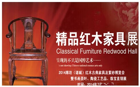 據悉,于2014年7月19-22日精品紅紅木家具展將會在諸城會展中心隆重舉行。屆時將會有來自全國各地中國十大品牌古典家具廠家、十大紅木家廠家等等參展,展會將會迎來盛大的一頁。諸城,位于諸城經濟開發區和平北街、舜苑路,內部設有2萬平米的標準展廳。每年舉辦食品、汽車、房產、紅木展、茶博會、文博會、婚博會等成功展會,取得了良好的經濟和社會效益。