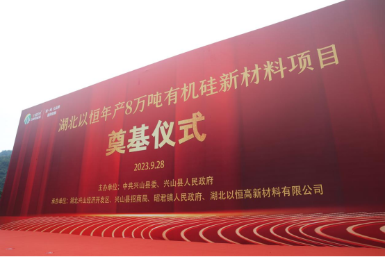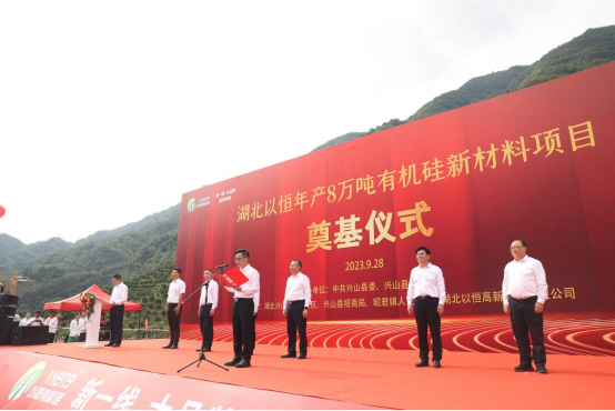 2023年9月28日上午9點18分,湖北以恒年產8萬噸有機硅新材料項目開工儀式,在湖北興山化工園大禮溪片區湖北以恒廠區內如期舉行。前往現場參加儀式的有興山縣委領導、縣直部門、鄉鎮、企事業單位、縣開發區管委會、縣招商局干部職工、昭君鎮人民政府干部職工及群眾代表等160余人。在社會各界的見證下,湖北以恒開工奠基儀式于當日圓滿成功!