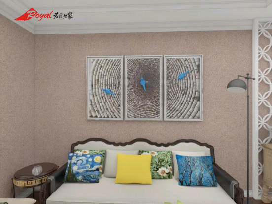 君匠世家藝術(shù)壁材的七彩貝殼涂料,經(jīng)過高溫去油去雜質(zhì)后,沙粒內(nèi)部變得多孔疏松,有利于吸收乳液混合物等輔助性施工材料,由此被吸收到內(nèi)部的乳液混合物成膜后相互連結(jié)使表面更緊密更耐候。其次,由于砂粒內(nèi)部疏松排布鏈狀相連,使乳液充分滲透到涂層內(nèi)部,成膜后有良好的抗開裂性和折疊性,能經(jīng)受10次以上的平涂紙卡對折測試。