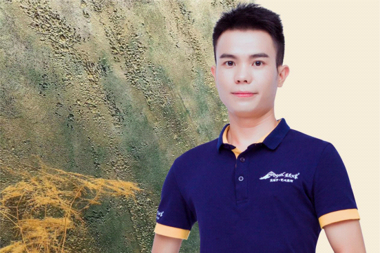 他從基層員工起步,帶著涂料產品從實驗室到施工現場,熟悉過每一道生產工序和質檢程序,逐漸積累了豐富的基礎知識和實操技能。在前輩的印象中,他表現很好學,被師傅領進門后,自己愿意花很多心思去研制新的肌理圖案效果,每次工程項目完結以后都會默默作好記錄,在總結會上積極進言獻策。
