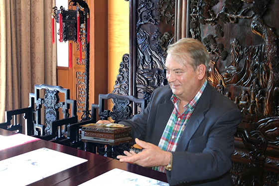 穆拉德:我最初接觸紫檀,是在2006年時,“諾貝爾獎獲得者北京論壇”活動的閉幕晚宴在中國紫檀博物館舉行,席間,陳麗華董事長講了紫檀的神奇功效,尤其是“小地龍”的故事深深的吸引了我,之后當放置在紫檀木托上的‘小地龍’呈現在面前的時候,依舊栩栩如生,輕輕碰觸它時,能夠感受到‘小地龍’的皮膚仍然保持著彈性,與紫檀接觸的部分微微有些粘,說明它的皮膚仍具有活性。