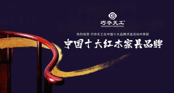 近日,在《中國品牌網》與《中國品牌招商網》等多家權威媒體聯合舉辦的2021年“中國十大品牌”評選活動中,巧奪天工從數百家紅木家具品牌中脫穎而出,斬獲“中國十大紅木家具品牌”稱號。這是巧奪天工用質量鑄造品牌的重要體現,也是市場對其品牌和產品的實力見證!