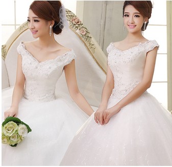 極具氣場的一款一字肩抹胸婚紗,很奢華很閃亮,非常適合做婚紗,超有公主范,收腰設計,能讓你的腰身更顯身材,讓人看一眼就喜歡上它。