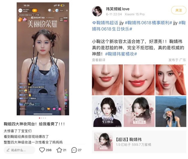 站外,這一場內(nèi)容豐富、收獲感滿滿的直播在小紅書、微博等社交平臺被自來水們截圖傳播,把粉絲和路人一起釣成翹嘴;蜜橘妝成為全網(wǎng)熱點流行 ……