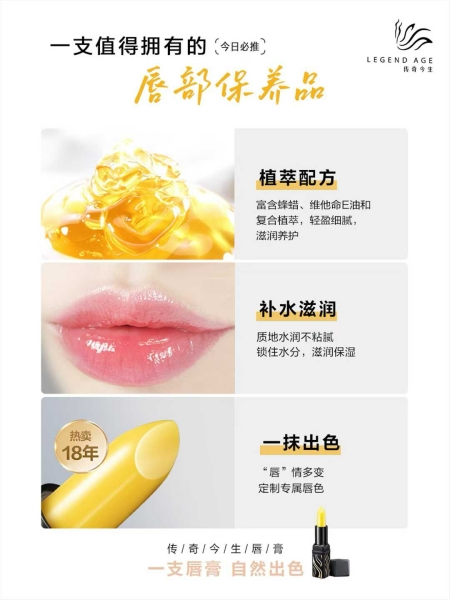 以傳奇今生唇膏為例,這款暢銷18年的現象級單品,以“潤唇膏+口紅+唇膜”三效合一的創新設計顛覆傳統唇部護理賽道。作為唇膏,其蜂蠟凝脂膏體,能夠維持唇部水分,持續為唇部提供呵護保濕,膚感潤而不膩;作為口紅,TA具備“變色”功能,能夠根據唇部狀態,自動變化色澤,呈現出適合使用者的自然紅潤效果;作為唇膜,TA可以淡化唇紋,改善唇部干燥。一支唇膏,自然出色,美唇又保養唇部雙管齊下,帶來持久的水潤之美,深受消費者喜愛,成為傳奇今生當之無愧的“明星爆品”。