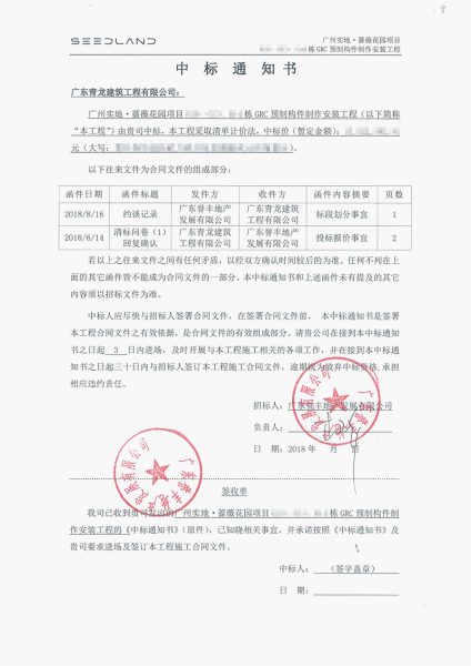 近日,廣東的青龍公司憑借強大的實力,成功中標(biāo)了廣州實地薔薇花園項目GRC預(yù)制構(gòu)件制作安裝工程,這是繼海南長影環(huán)球100、廣西新媒體中心、深圳坪山會展中心之后,青龍公司近期承接的又一個千萬級GRC大單,彰顯了青龍雄厚的GRC技術(shù)實力。