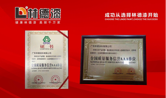 近日,林德漆憑借在綠色涂料行業(yè)領(lǐng)域的不斷探索和創(chuàng)新,榮獲由中國名牌產(chǎn)品培育委員會和中國品牌調(diào)查統(tǒng)計中心聯(lián)合頒發(fā)的“全國質(zhì)量服務(wù)信譽(yù)AAA單位”榮譽(yù)稱號。
