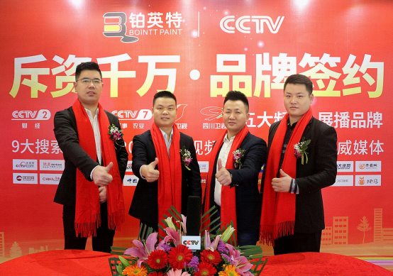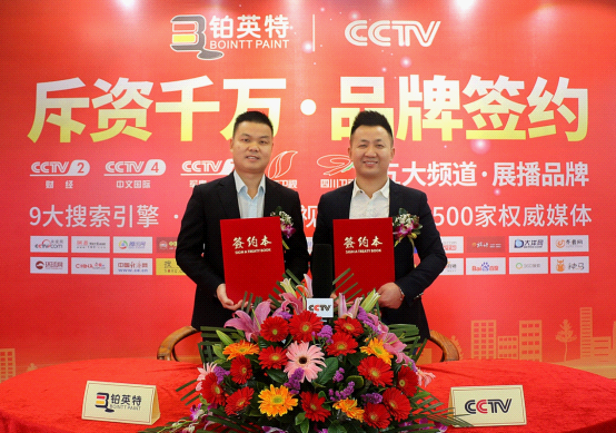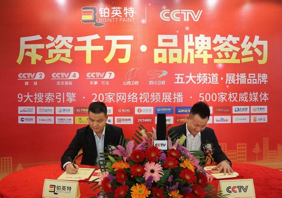 2019年3月25日,鉑英特涂料攜手中央電視臺、山西衛視、四川衛視舉行品牌戰略簽約儀式。一場以“斥資千萬·品牌簽約”為主題的簽約活動隆重拉開序幕。本次簽約儀式可謂吸引了社會各界人士的關注,《搜狐網》、《中國品牌網》、《慧聰家居》等知名媒體對本次簽約儀式進行了跟蹤報道。
